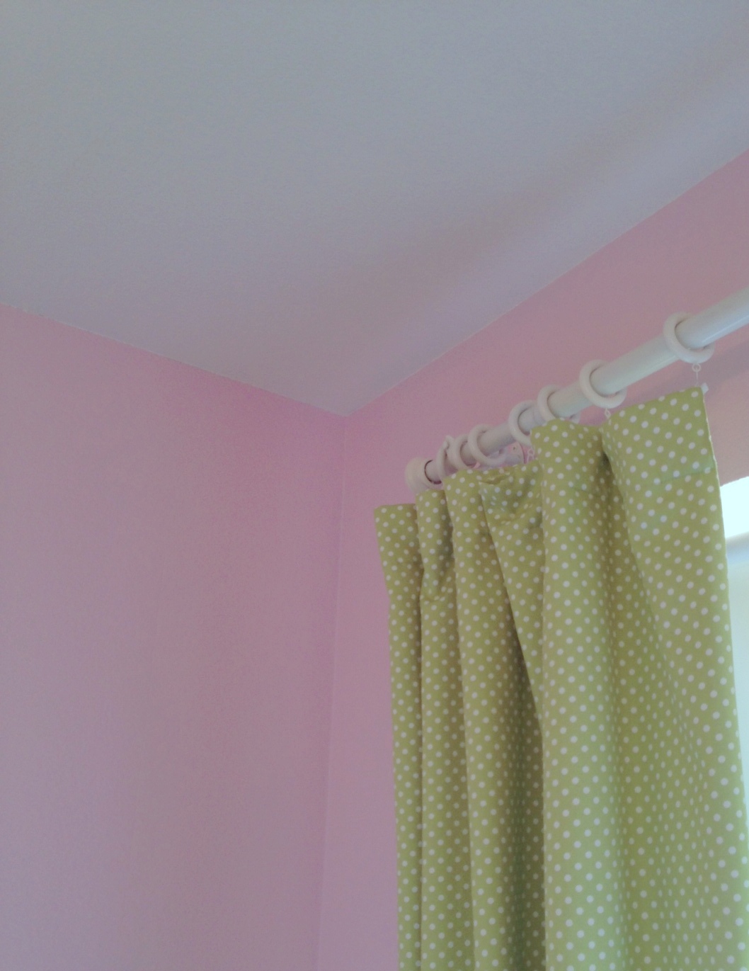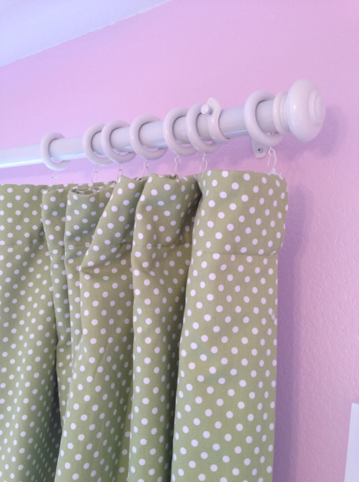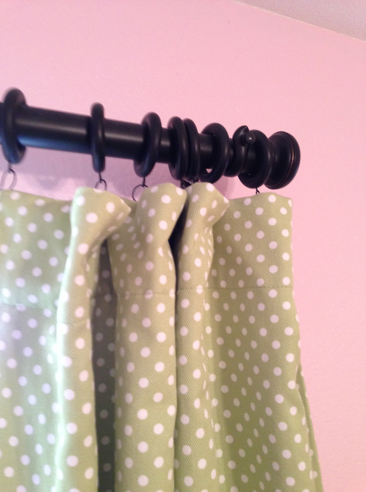 Sometimes, we all make mistakes with our design choices, one of mine was originally choosing oil rubbed bronze drapery hardware for my daughter’s room. I originally chose it based on the fact that the doorknobs and bathroom fixtures are all oil rubbed bronze. Unfortunately, the dark drapery rods just did not look right in a little girl’s room. The lighter toned drapery panels made the rods look like big black sticks and cut off the space. It would have been easier to cut my losses and purchase new rods, but I didn’t want to spend the money, so instead of purchasing all new hardware I just spray painted the existing rods with Dove White in Gloss by Krylon. Here is a before and after: