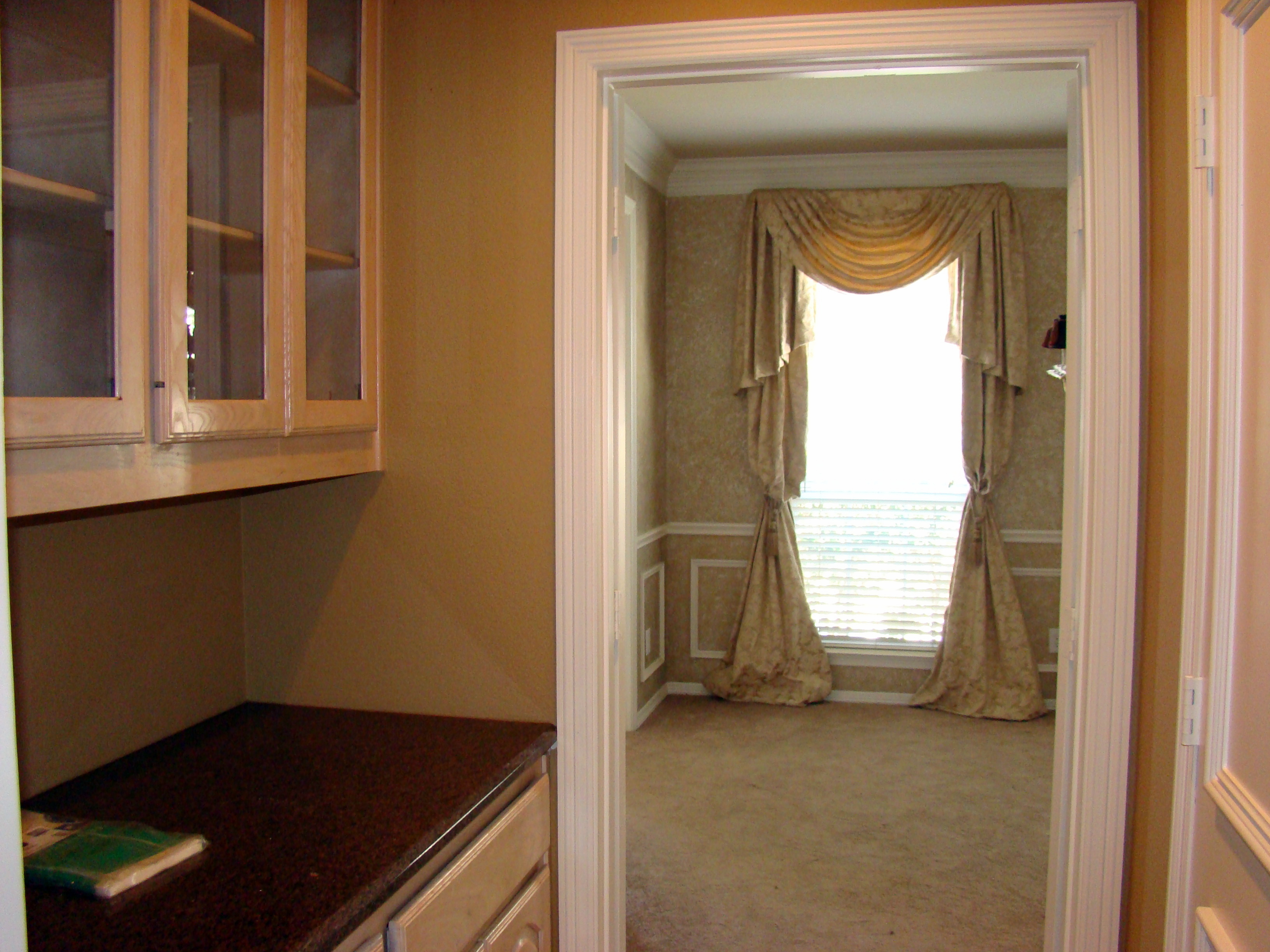 I really wanted to make this space special. I also wanted it to tie in nicely with my adjoining dining room. When we first moved into our house, we had the cabinets in our kitchen and butler’s pantry refaced with traditional white shaker style doors. The old cabinet doors were 16 years old, had a pickled oak finish and were in need of a little TLC. Refacing alone made a huge difference, but the pantry still needed an extra punch. It didn’t help that the interior cabinets were never finished.