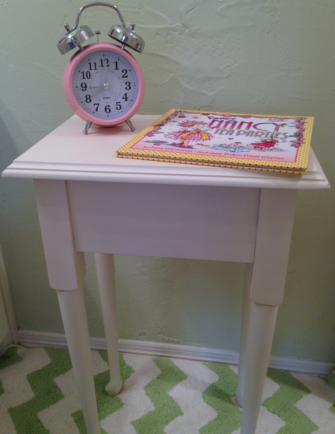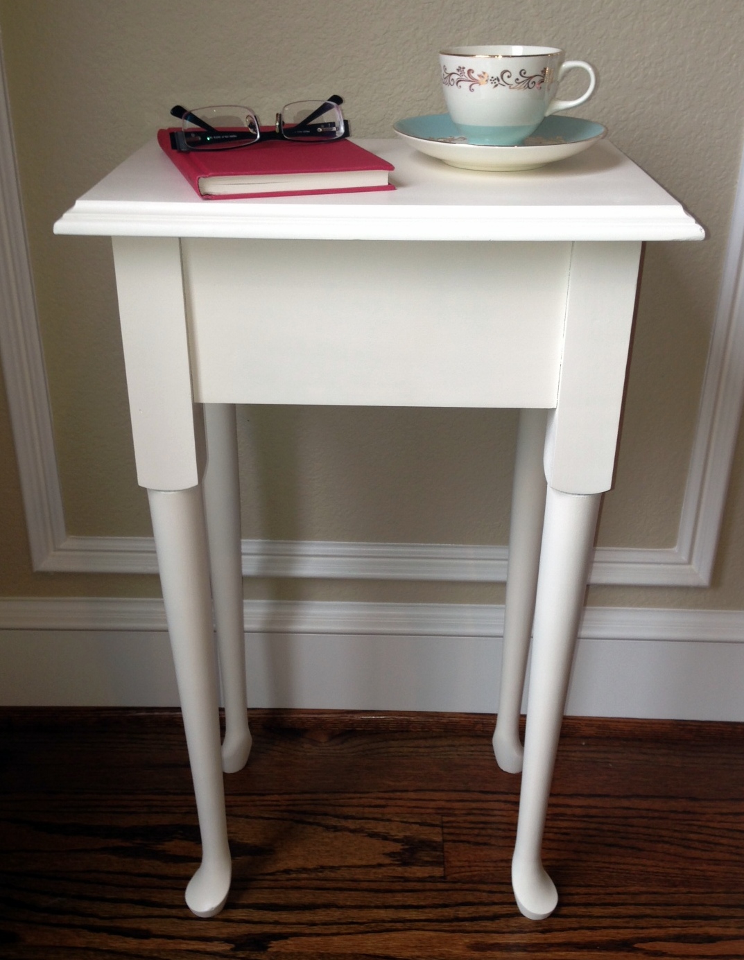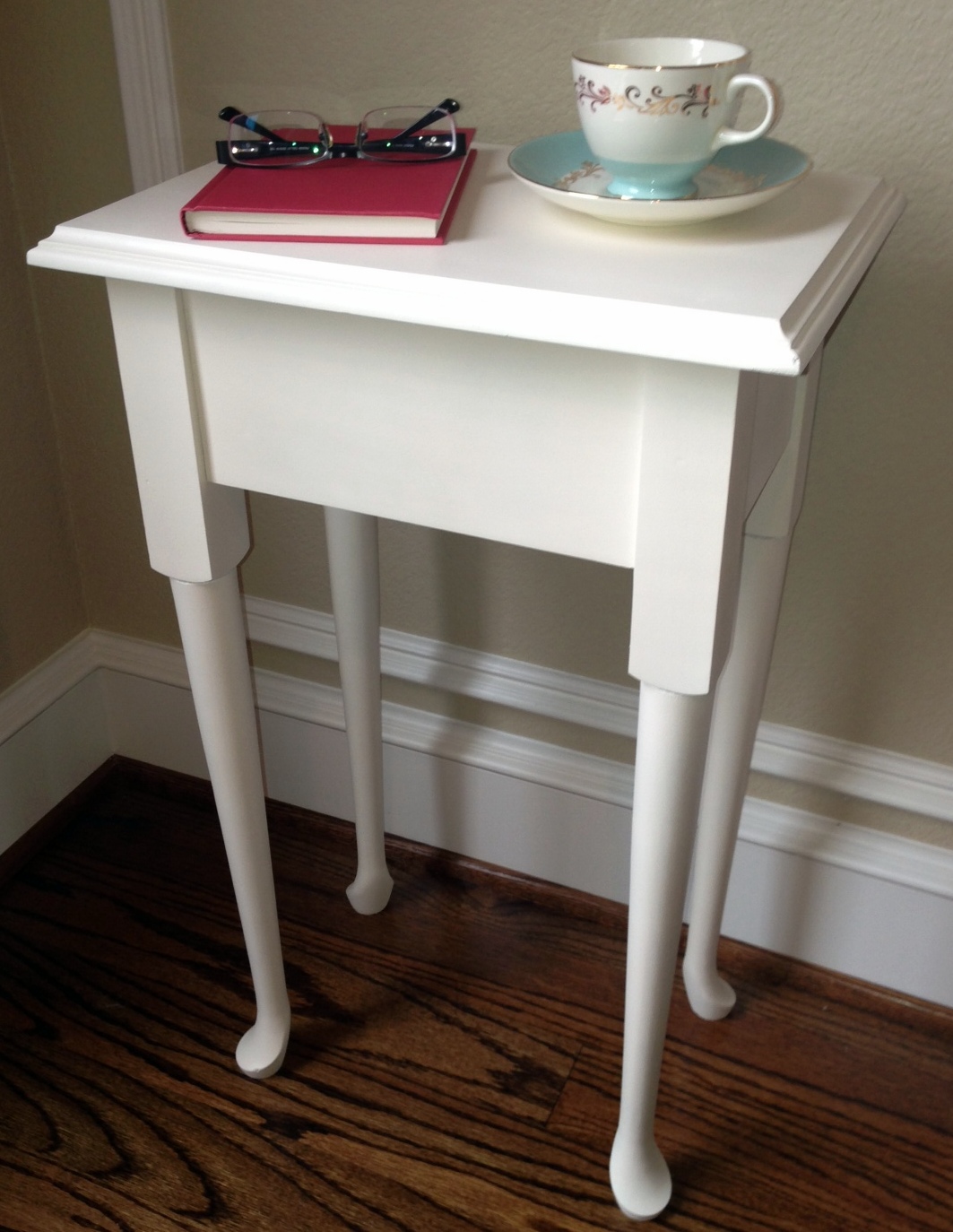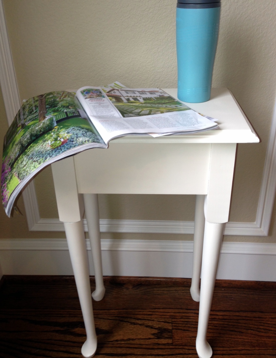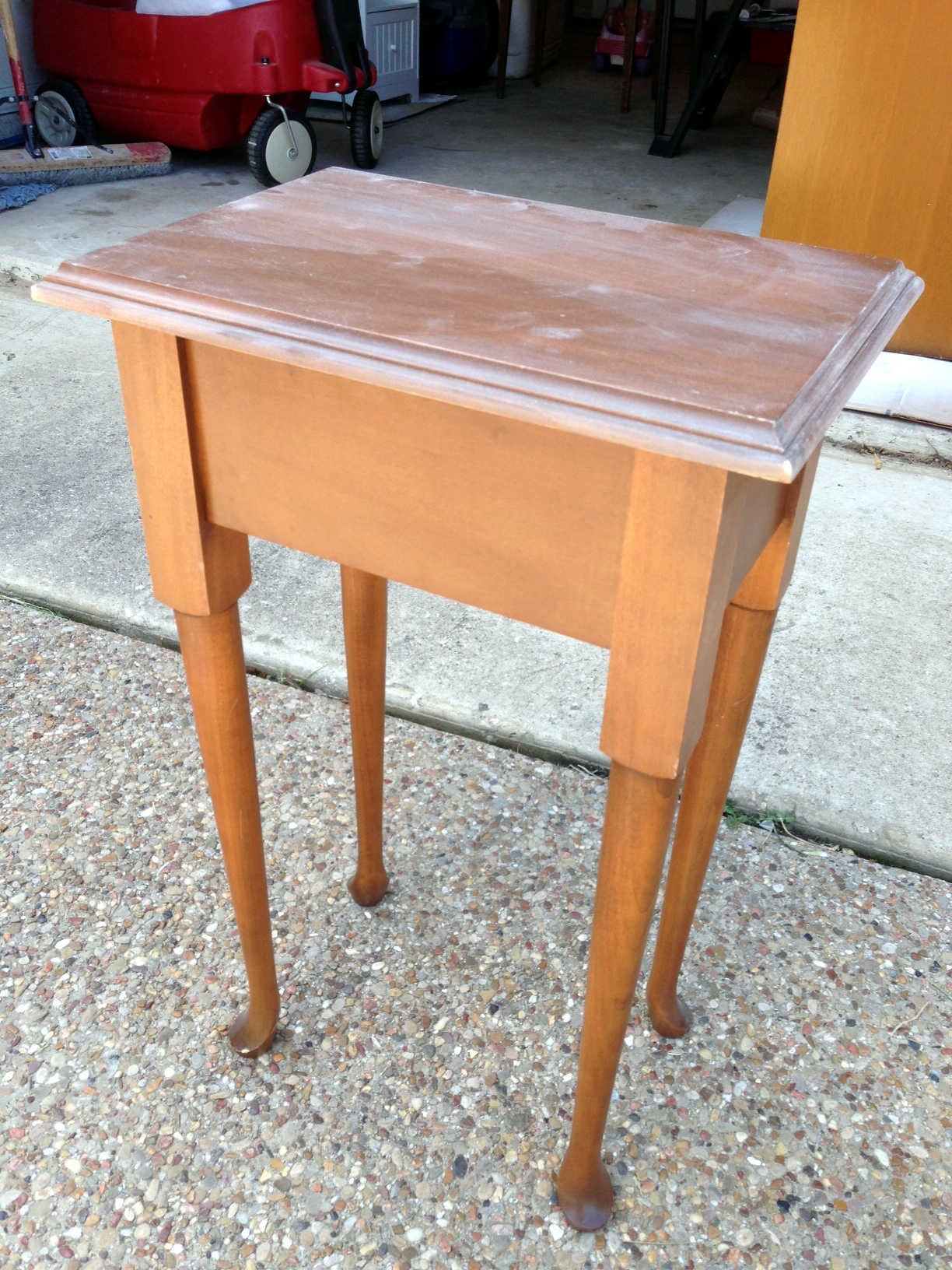 My very dear friend and neighbor called me the other day to tell me she was sitting in my driveway with a surprise. Was it a Starbucks gift card? Was it a bottle of wine? Why, no! It was something even better! It was a little side table in need of some TLC. Does my friend know me or what?