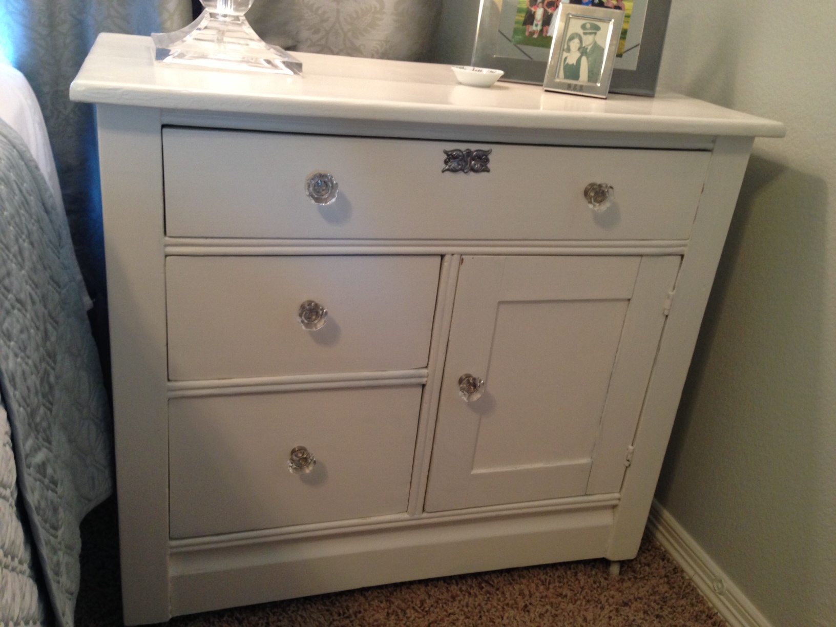 White Bedside Table Painted by Mom 2