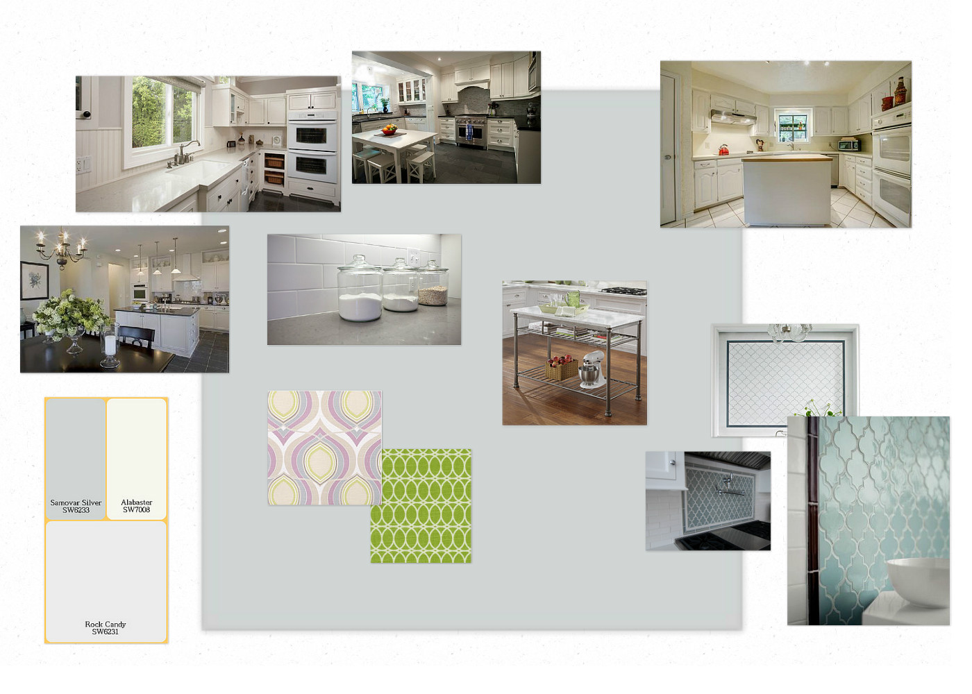 To help my clients visualize the potential of their soon-to-be-new spaces. I not only brought them samples of materials, but I also created virtual mood boards on Olioboard.com. For those of you who aren’t familiar with Olioboard, it is a free online community where users can create 2D and 3D room designs using personal images and products from other store brands found all over the web. Of course, I like to define Olioboard as the biggest time suck ever. No joke. I could spend hours on there designing (and redesigning) room after room after room. So, after playing working hard for a few hours, I came up with these mood boards for my clients.