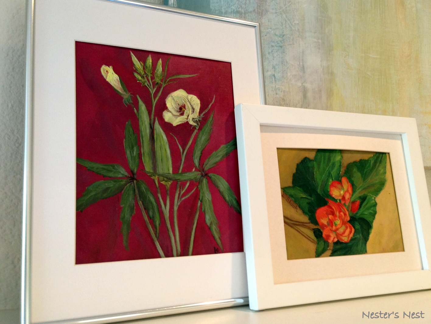 I’m also pleased I was able to balance out the newer furnishings of the room by adding a few older pieces with history.  Every day I look at my mantle and smile at the botanicals my grandmother painted.