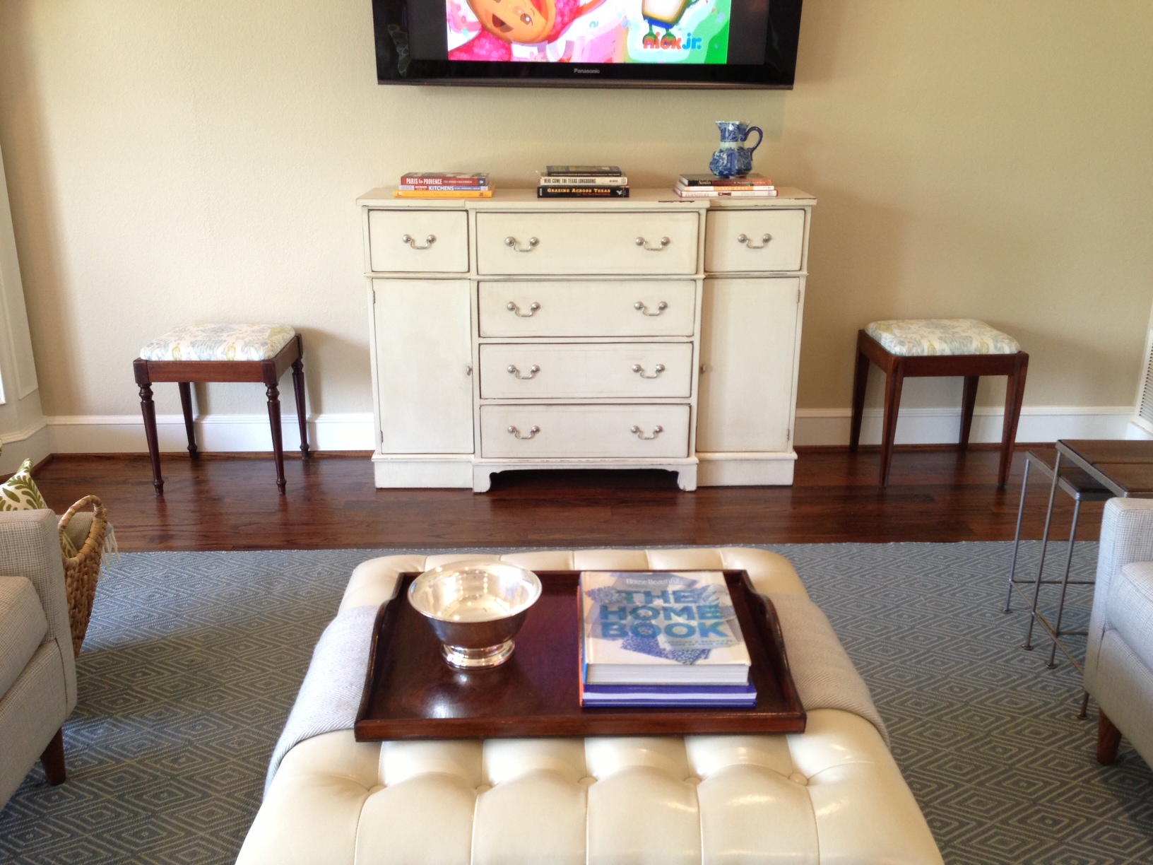 Also, did you notice the vintage sewing benches on either side of my media cabinet?