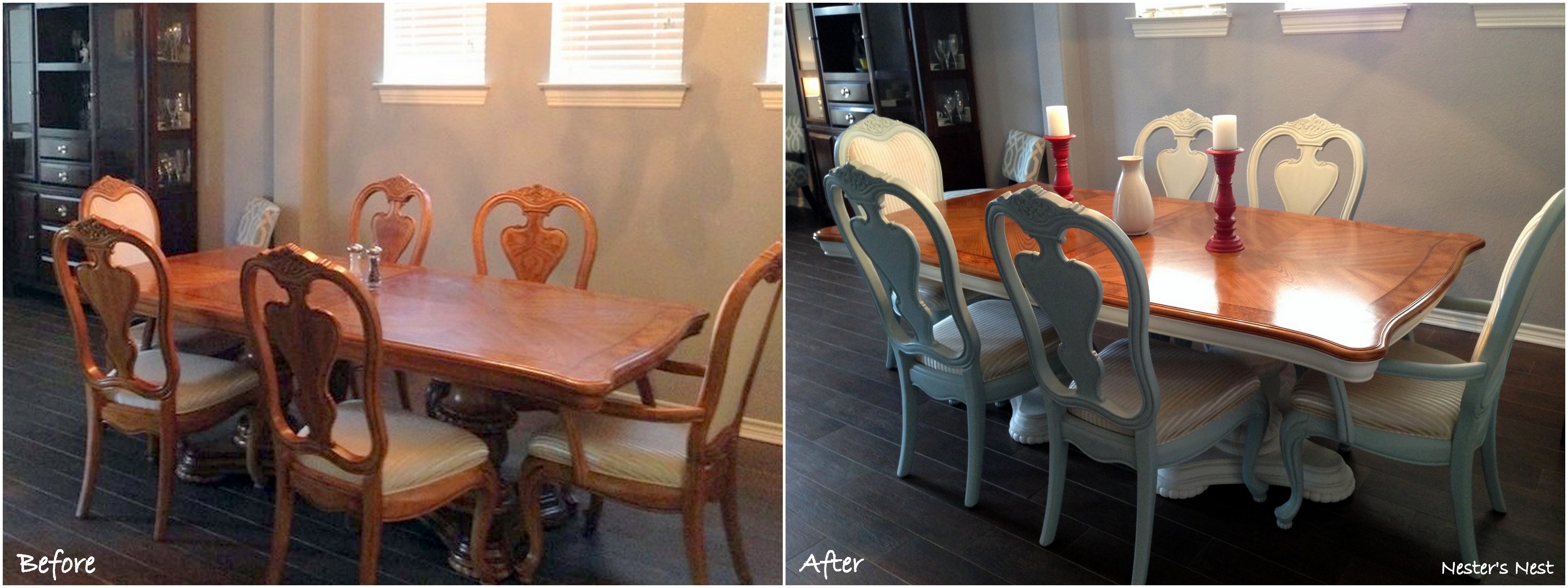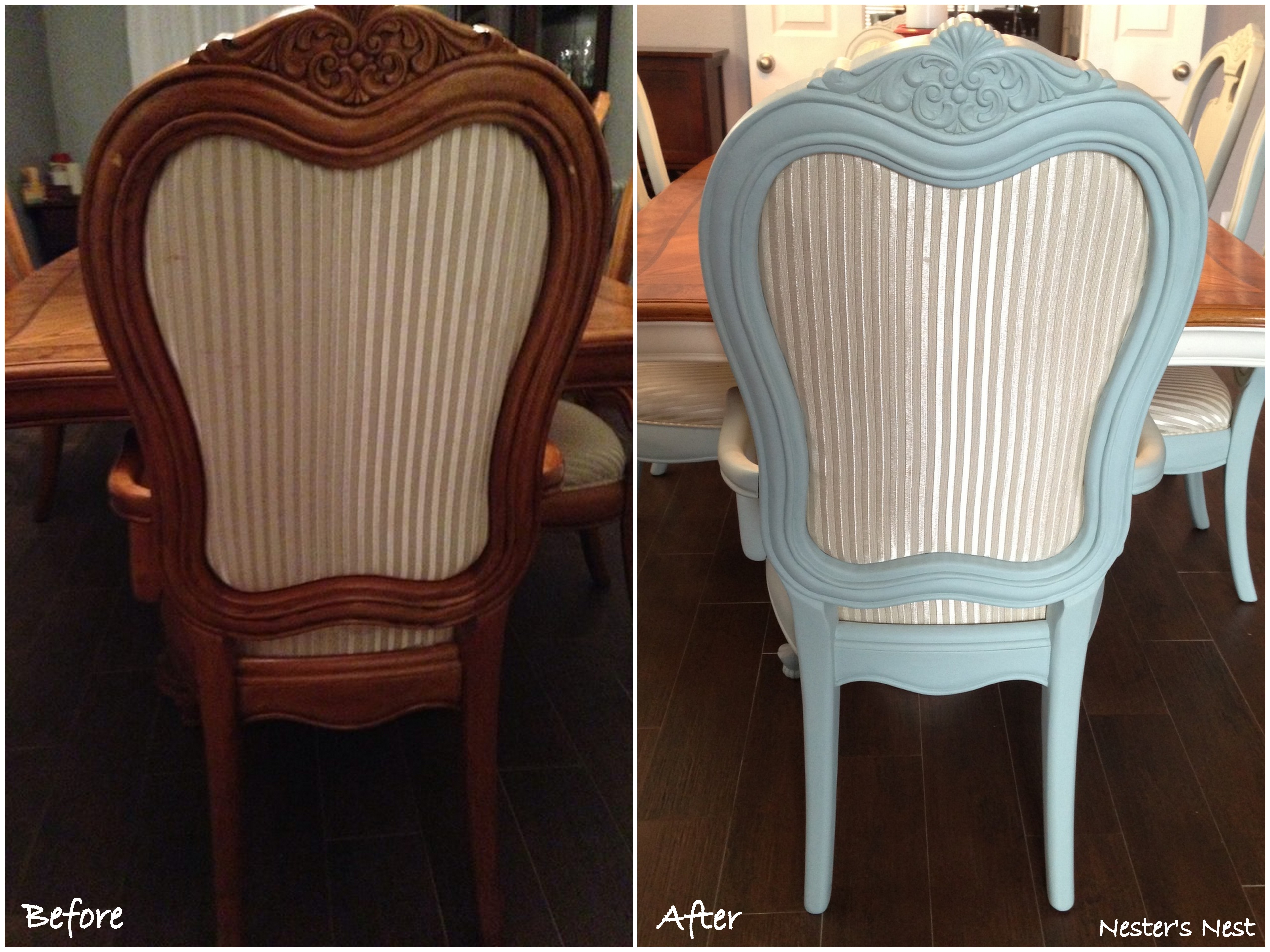 The chairs were the most time consuming part of the project and needed 3 coats of paint plus 3 coats of wax, but they turned out beautiful.  Adios, 1990’s!
