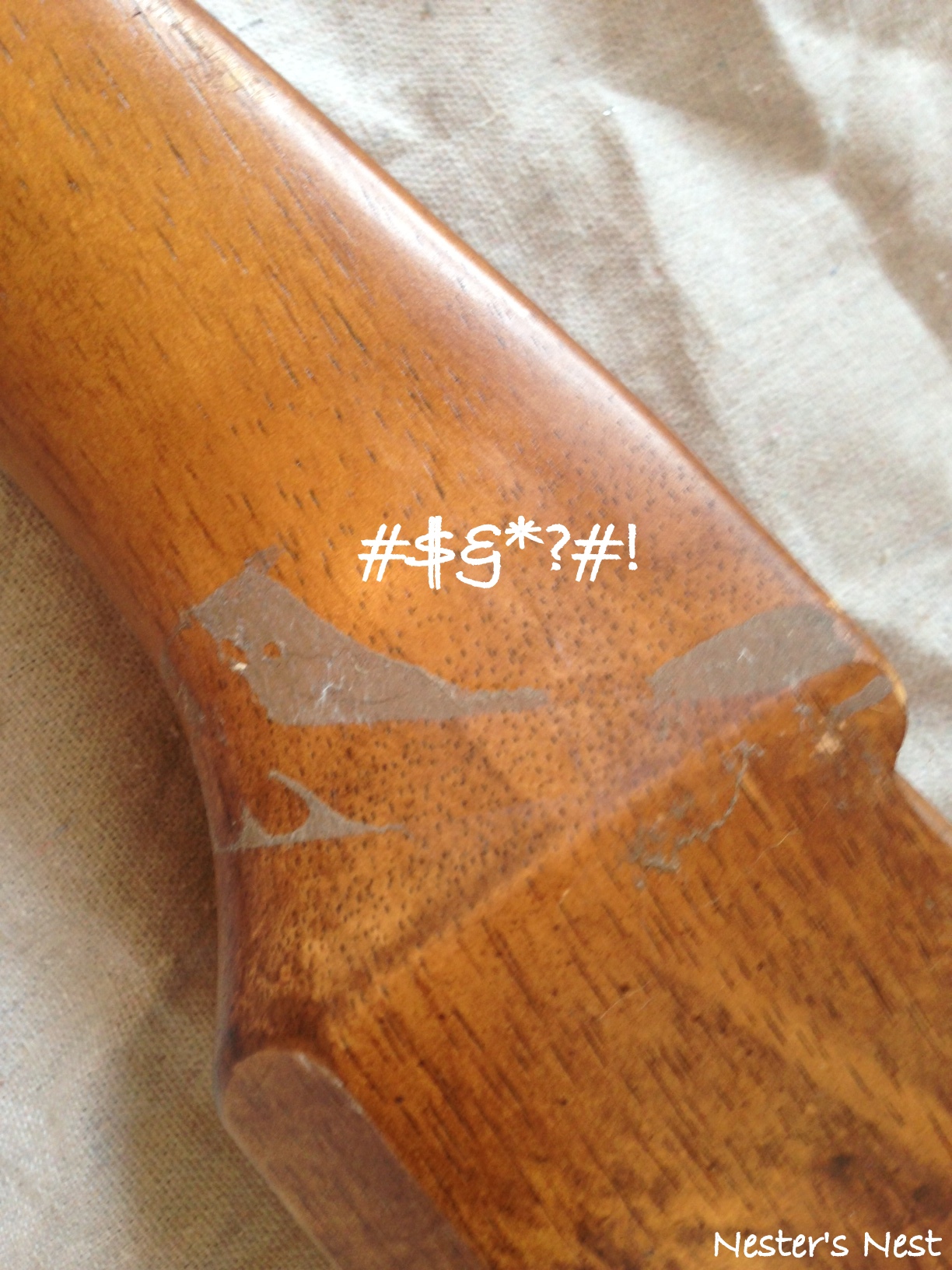 I also had to deal with a few scratches.  I used my trusty Minwax Wood Finish Stain Marker and the scratches were drastically minimized.