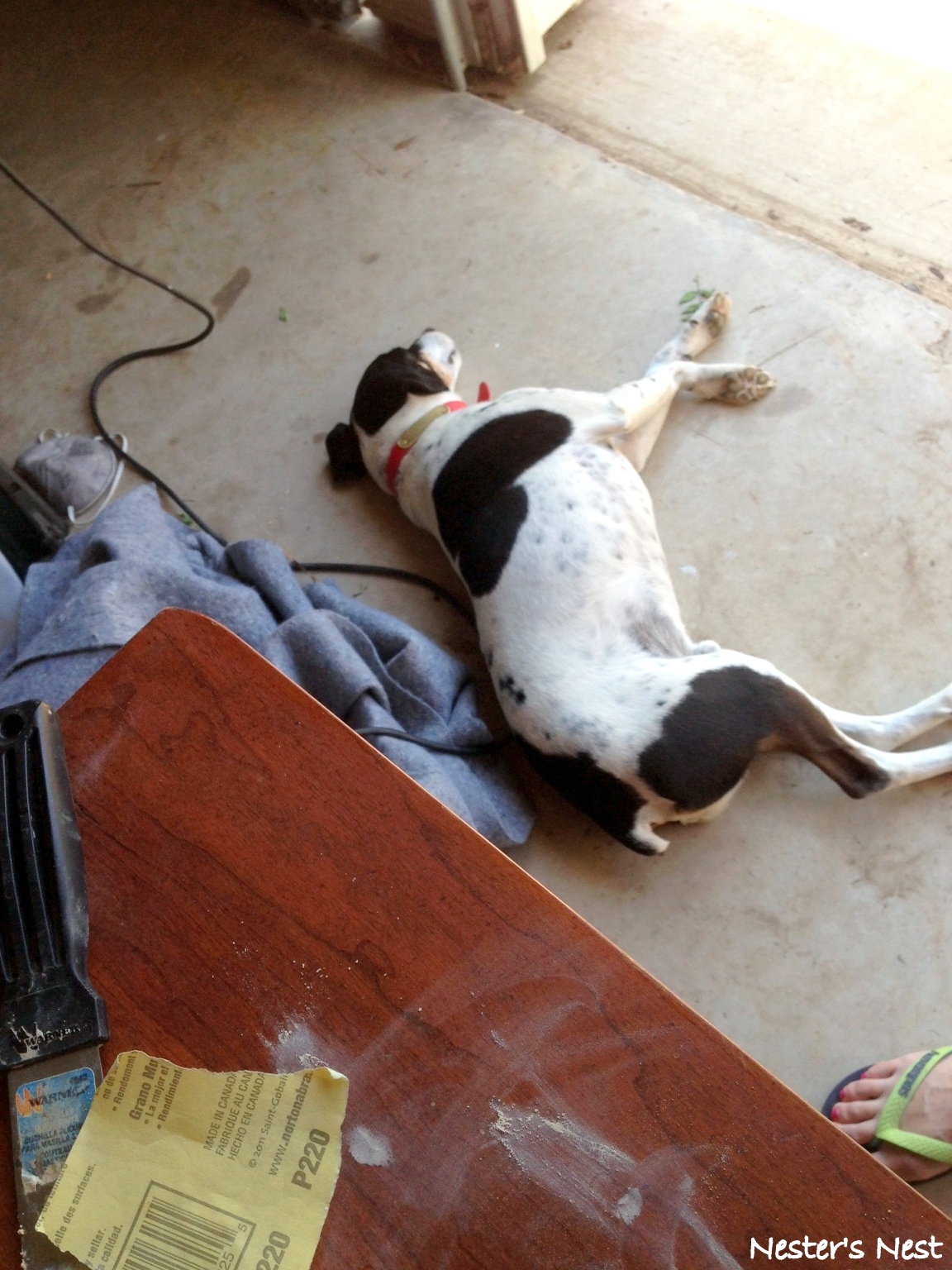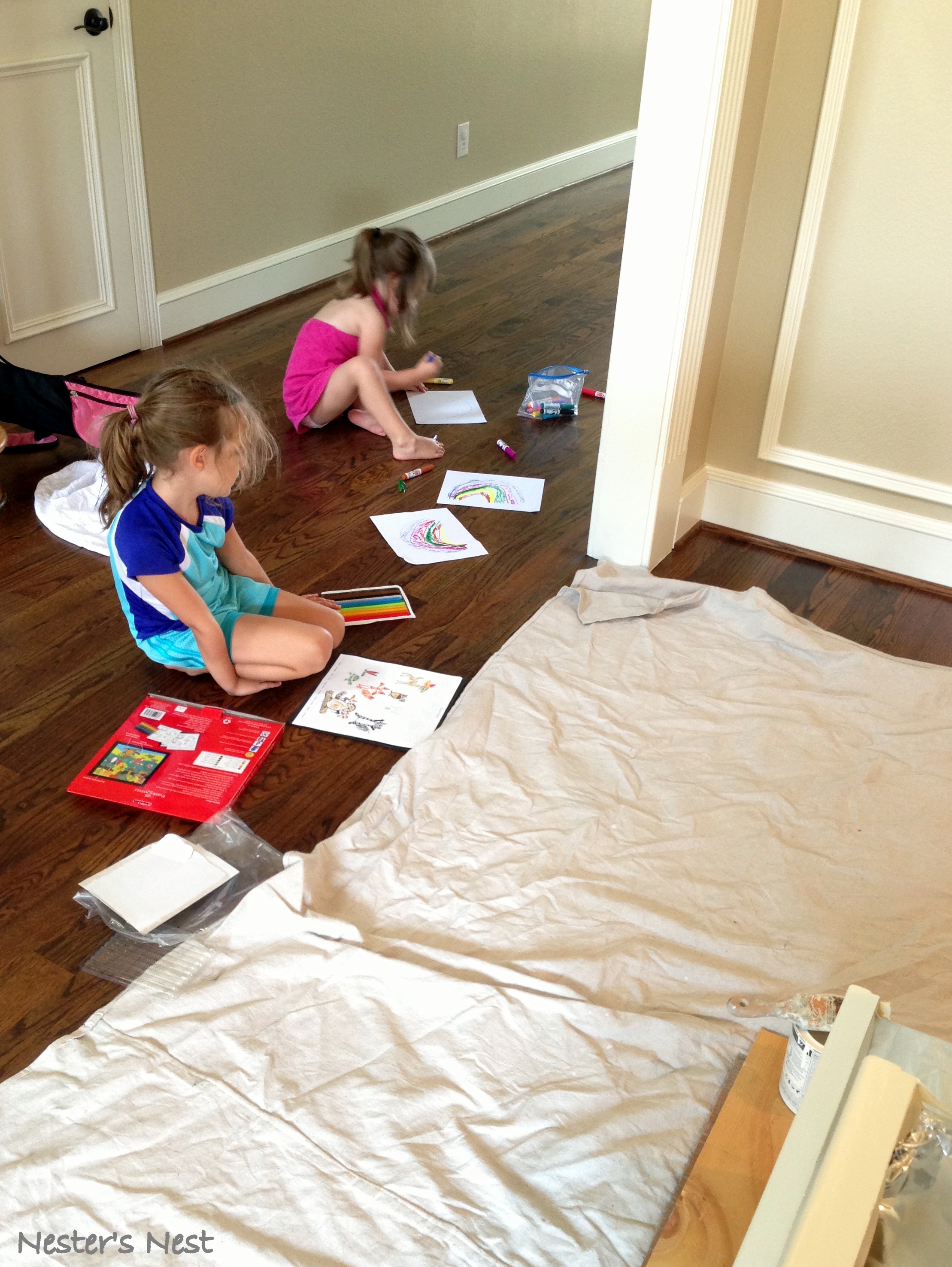 Once the hard part was complete, I brought the desk inside to paint (thank goodness!) where my girls could keep me company.