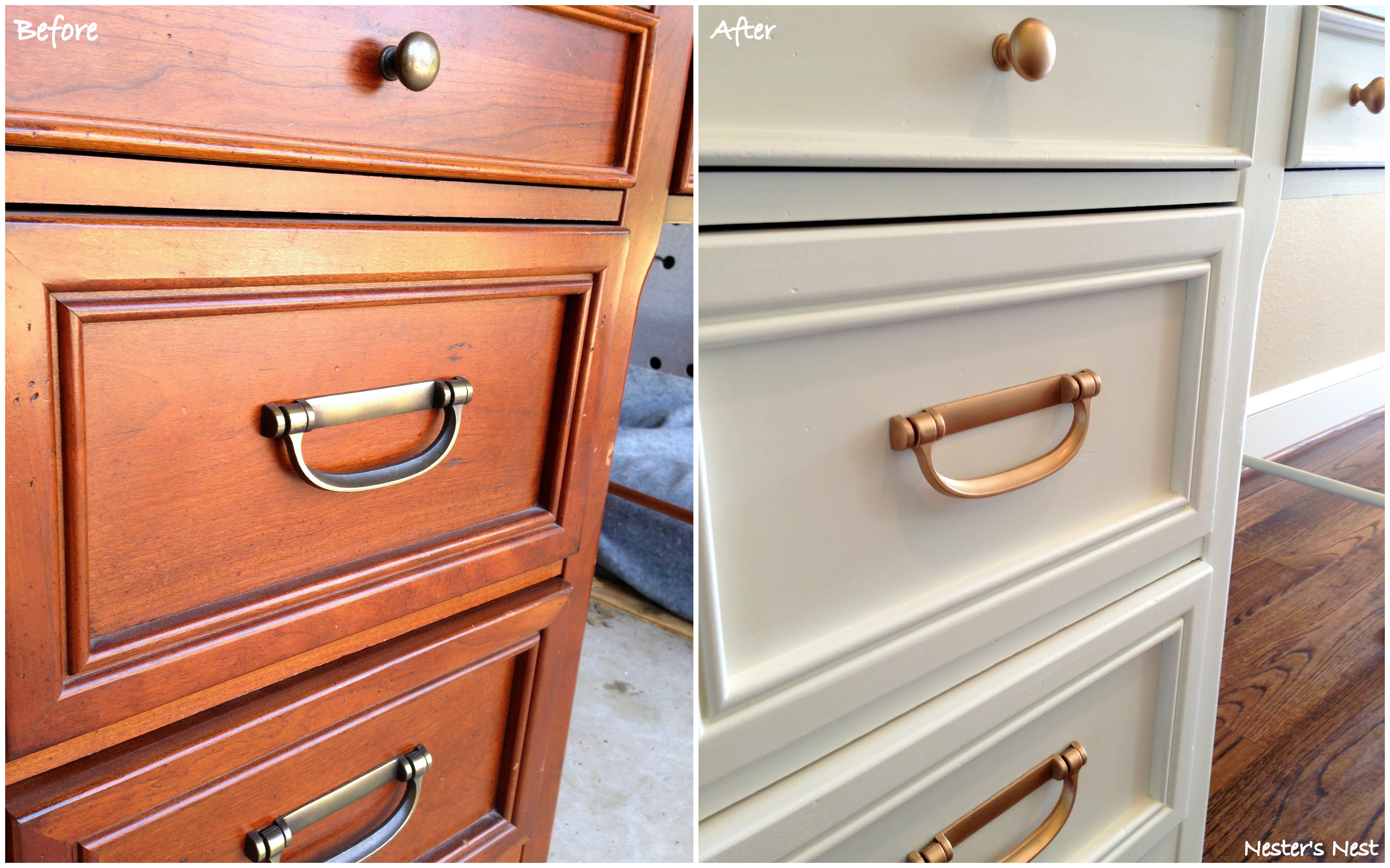 It’s so pretty and sophisticated looking! I love the way the original knobs turned out too. I think I would have had to keep this piece 😉