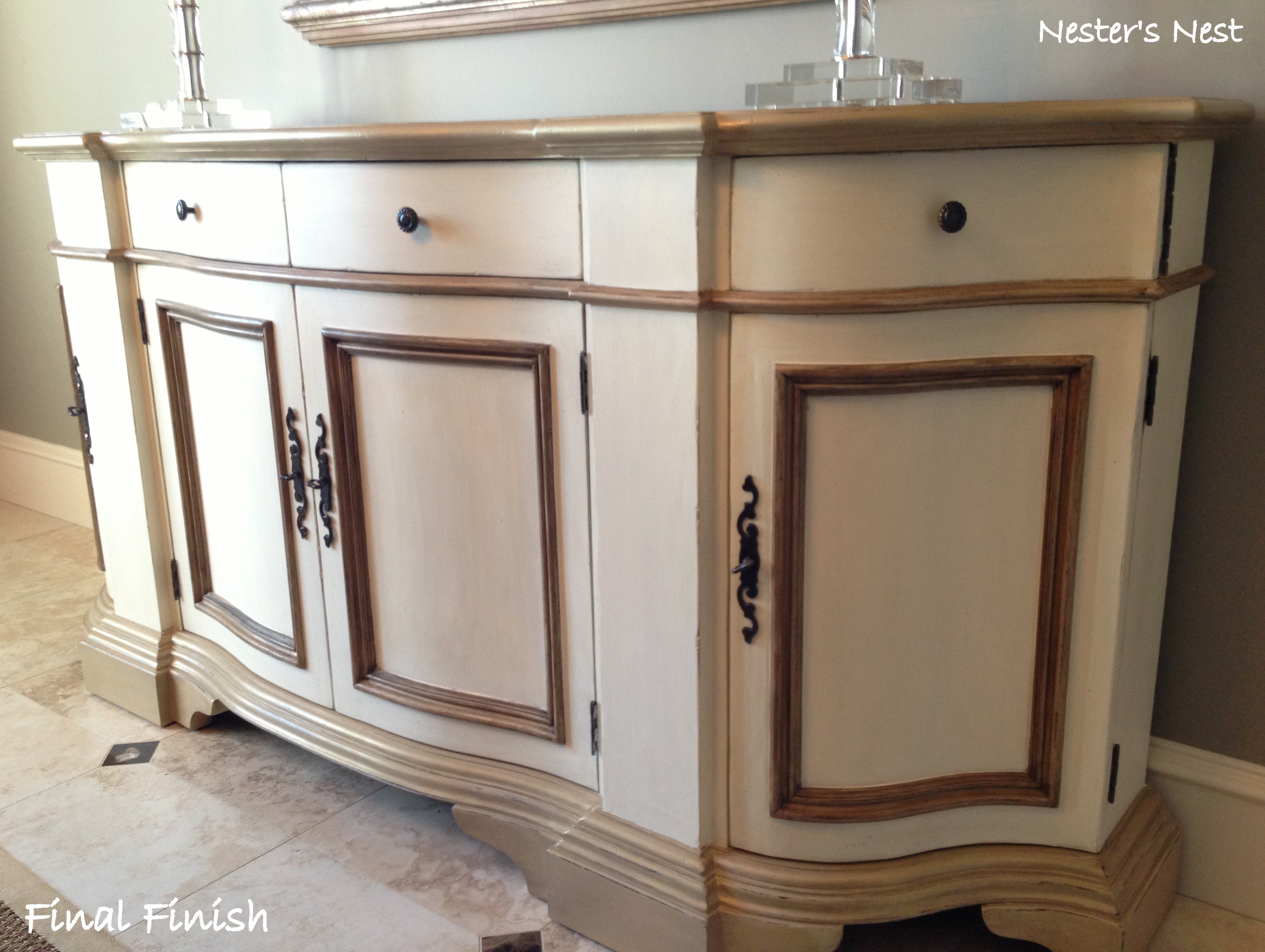 She then decided to redecorate and hired someone else to paint the buffet gold with a metallic glaze…