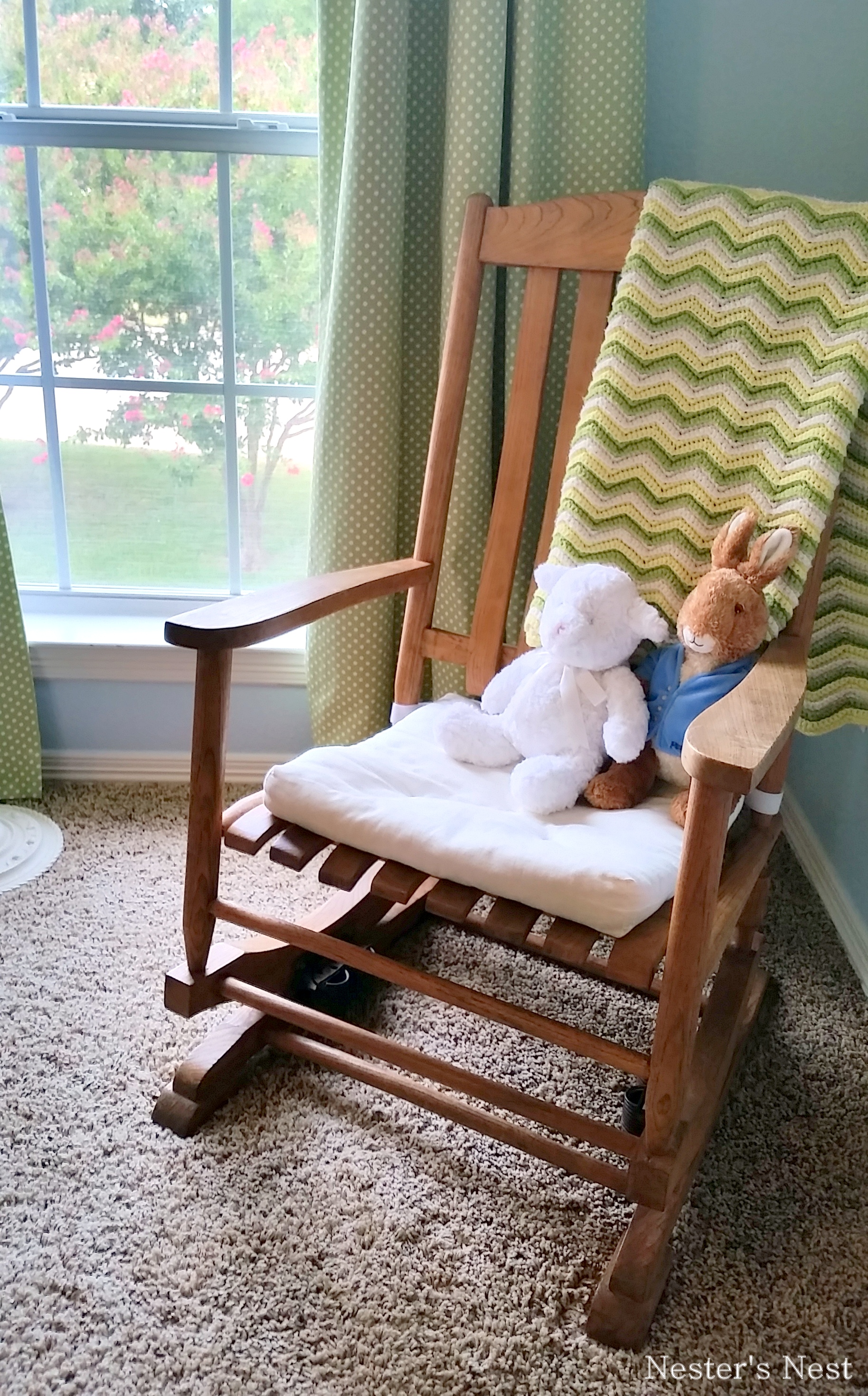 The room is complete with a rocking chair that belonged to my grandmother and is cozied up by a blanket my father’s cousin crocheted for me when I was an infant.