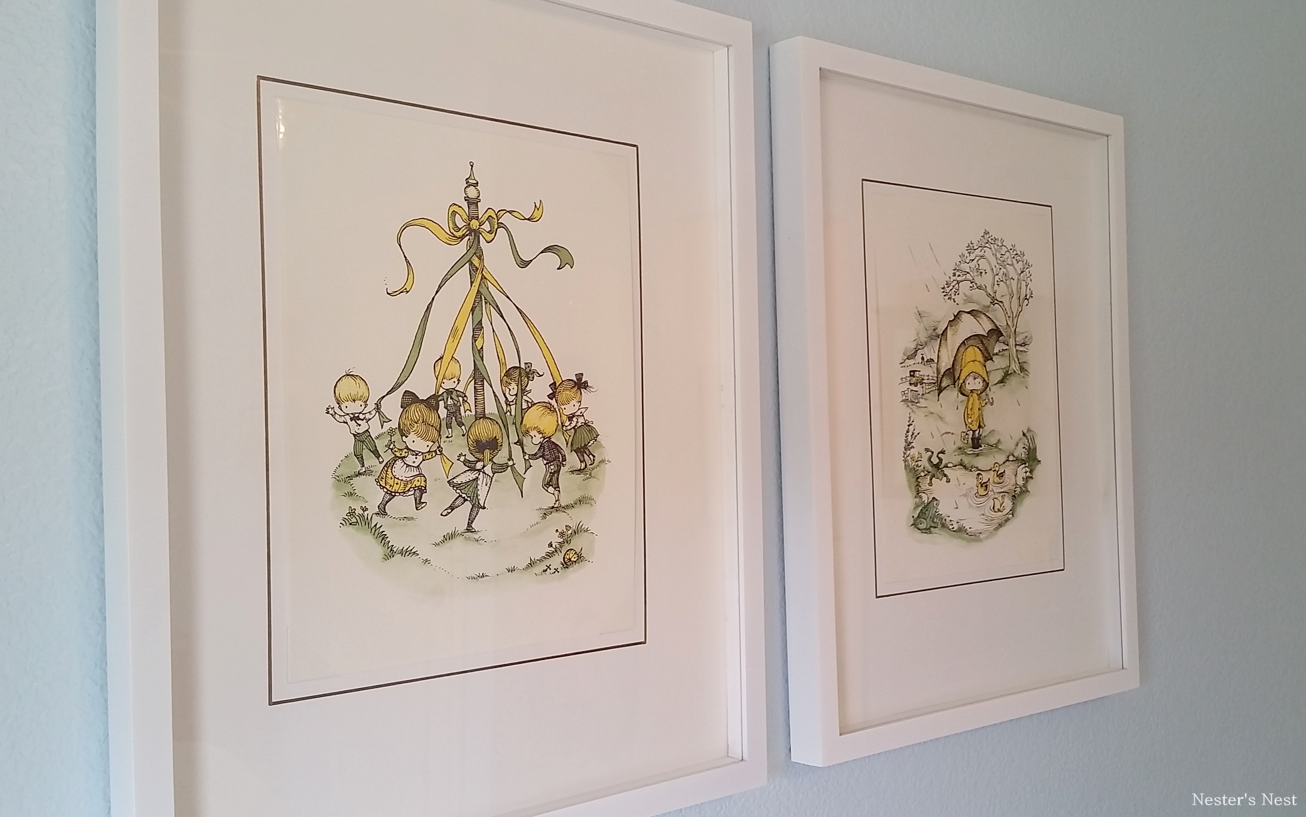 The other art pieces are some vintage bunny and Joan Walsh Anglund prints my mother helped find at Round Top.